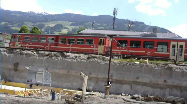 - Baugrube des Hotels bereits ausgehoben und mit Ankern, welche unterhalb der Bahn durchreichen, positioniert und befestigt und mit einer Spritzbetonwand gesichert